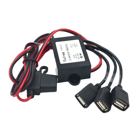 Adaptador conversor de energia para carro, 12 v 24v para 5 v dc módulo de entrada triplo 3 usb conector 12 volts para 5 volts